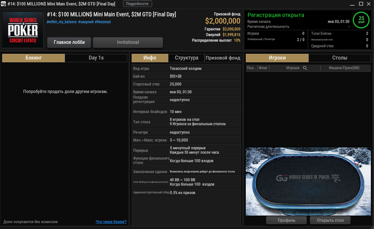 У Главного события также будет мини-версия по $100 с гарантией $2M. По сравнению с основным Мейном, мини-версия будет значительно ускорена.