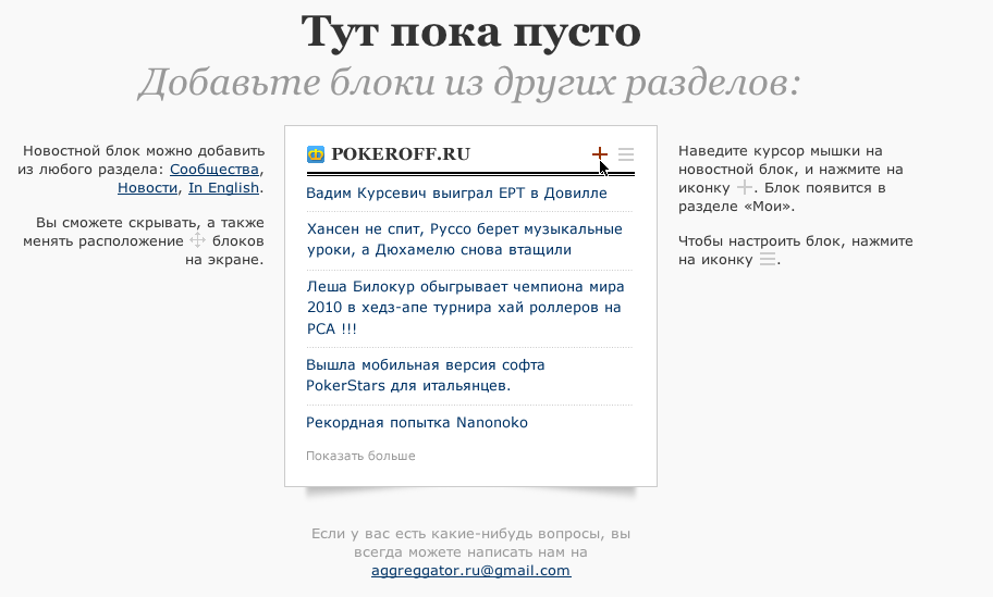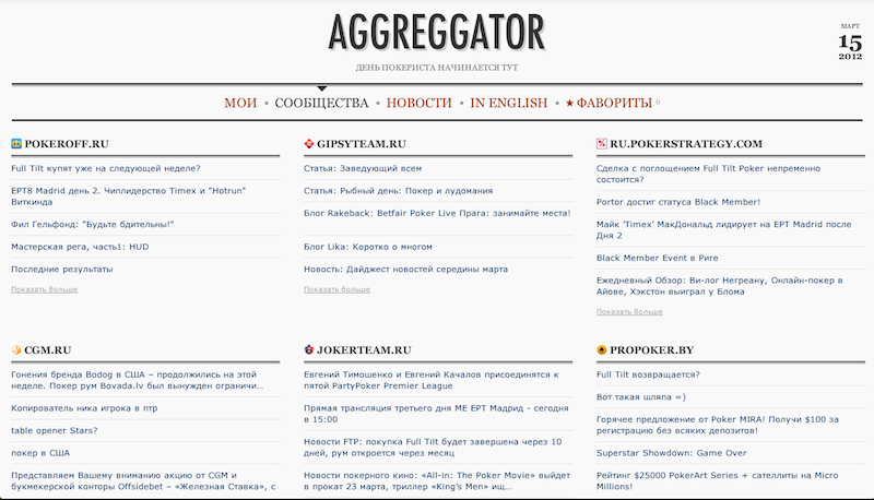 Нашел несколько похожих сервисов - http://alltop.com/, http://popurls.com/, но там ясное дело не было нужных мне сайтов. Так что решил сделать специальный покерный, да и поудобней, чем анaлoги.