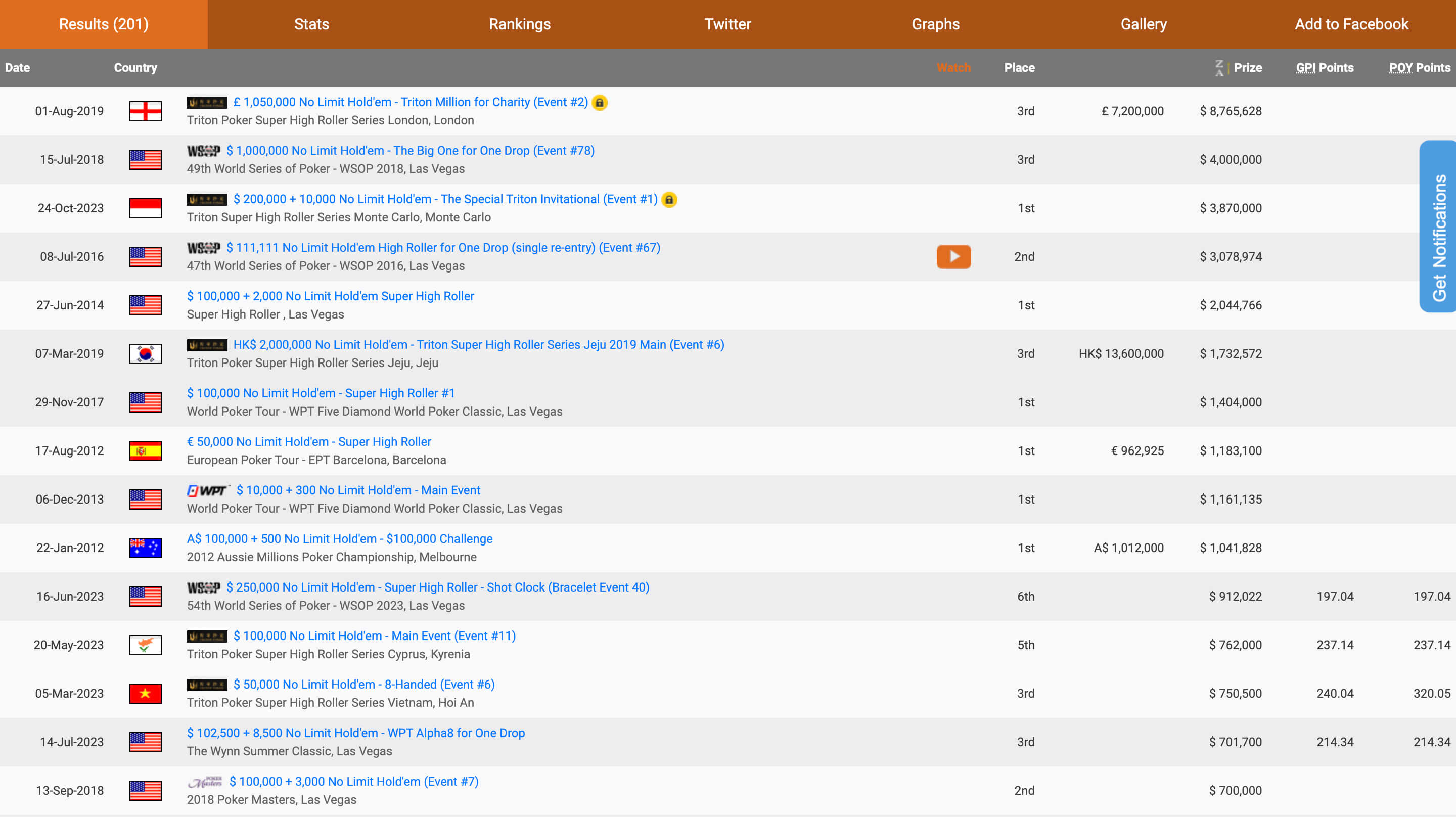 Если честно, меня не особо волнует мой рейтинг на Hendonmob. Круто было бы стать топ-1 — это означало бы то, что я заработал много денег. Но вообще эти рейтинги мне по барабану.