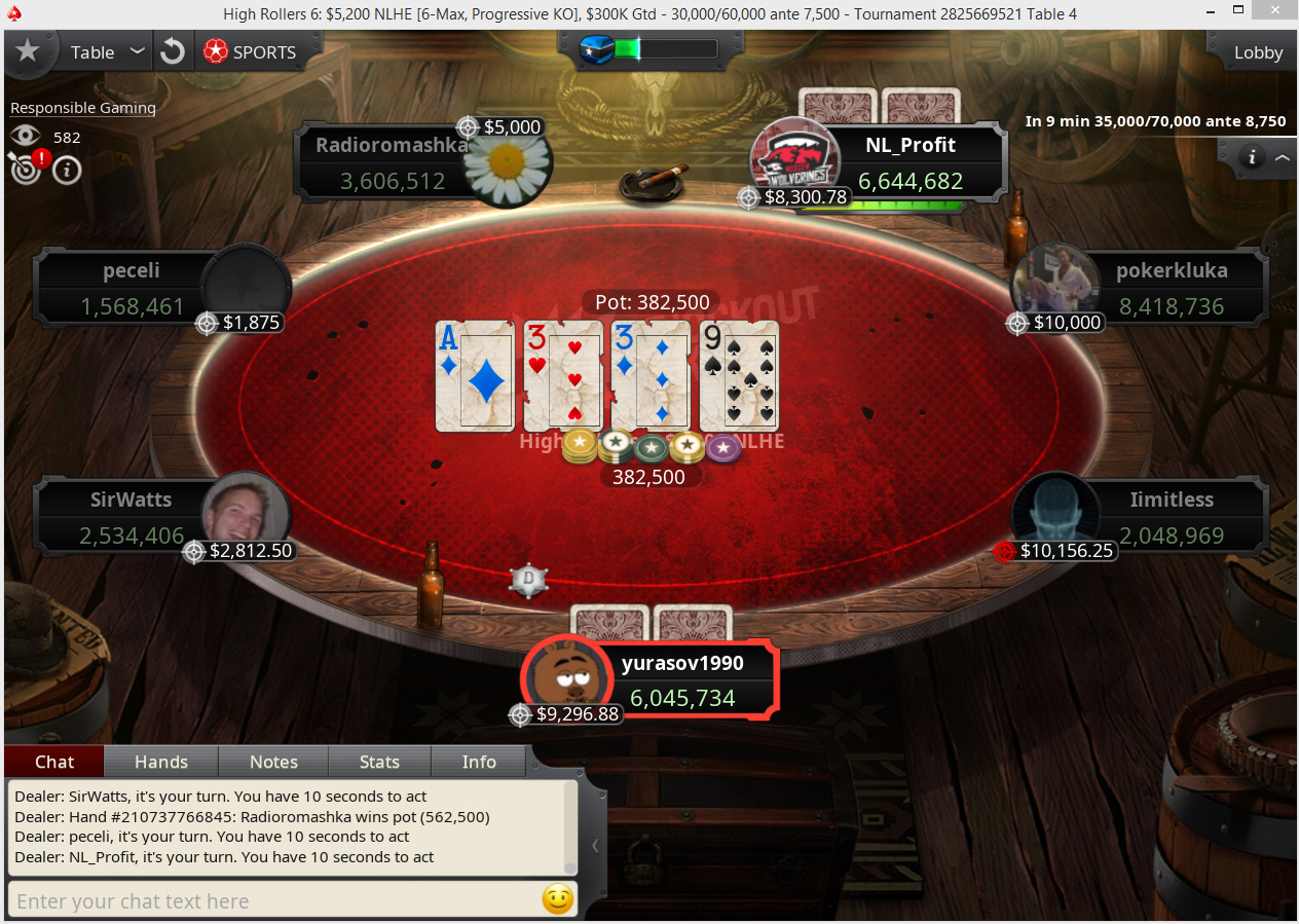 За финальным 7-max столом встретились Родриго «peceli» Пресутти (Rodrigo Presutti), Майк «SirWatts» Уотсон (Mike Watson), Люг «pokerkluka» Гилес (Luuk Gieles) и четыре представителя русскоязычного комьюнити — Роман «Radioromashka» Емельянов, Анатолий «NL_Profit» Филатов, Дмитрий «yurasov1990» Юрасов и Виктор «limitless» Малиновский (Wiktor Malinowski).