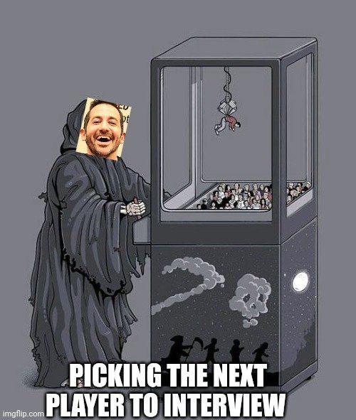 Интересно, что даже когда Платт берёт интервью не у самого игрока, а у кого-то из команды поддержки, то игрок вылетает.