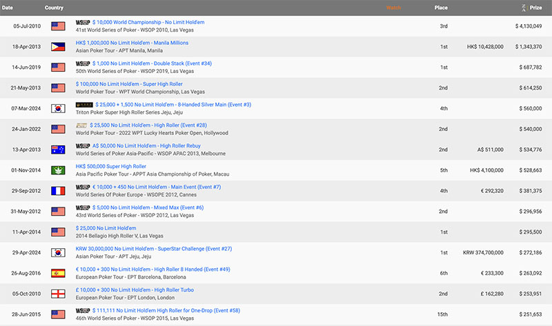 В итоге в этом турнире Чонг занял 3 место и получил $4,130,049.
