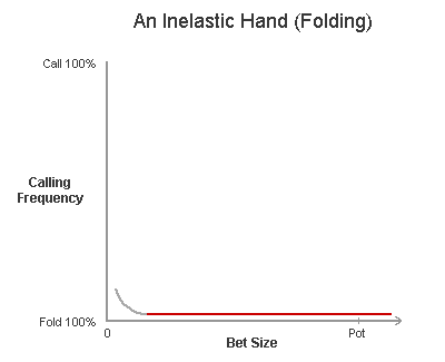 2) Игрок с неэластичной рукой будет коллить или фолдить практически независимо от сайзинга. Бетсайзинг не влияет на их решение касательно того, стоит ли коллировать.