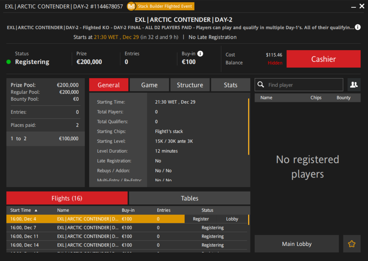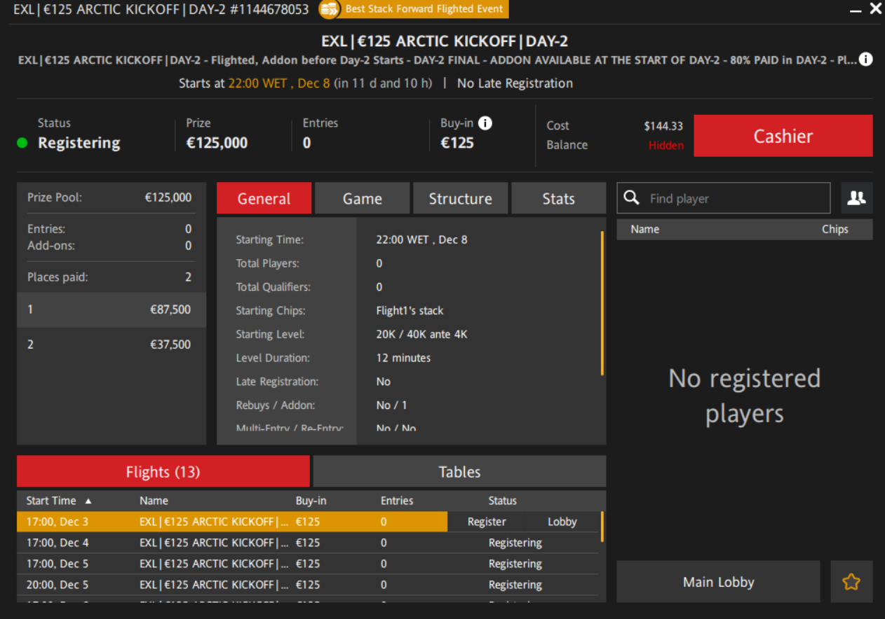 - 4 декабря — сыграть Day 1 €55 EXL Frozen Fortune €125K Gtd.