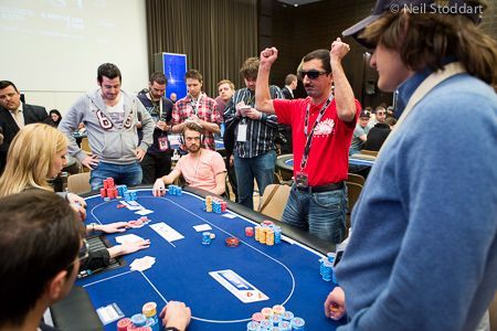 Именно таким вопросом задавалась большинство игроков, комментаторов и зрителей в течение вчерашнего дня Main Event немецкого этапа Европейского покерного тура. Потому что никому не известный россиянин уверенным танком прошелся по своим соперникам за телевизионным столом и из коротких стеков выбился в лидеры турнира. Да так там и остался, пропустив вперед по итогам дня 5 лишь одного игрока.