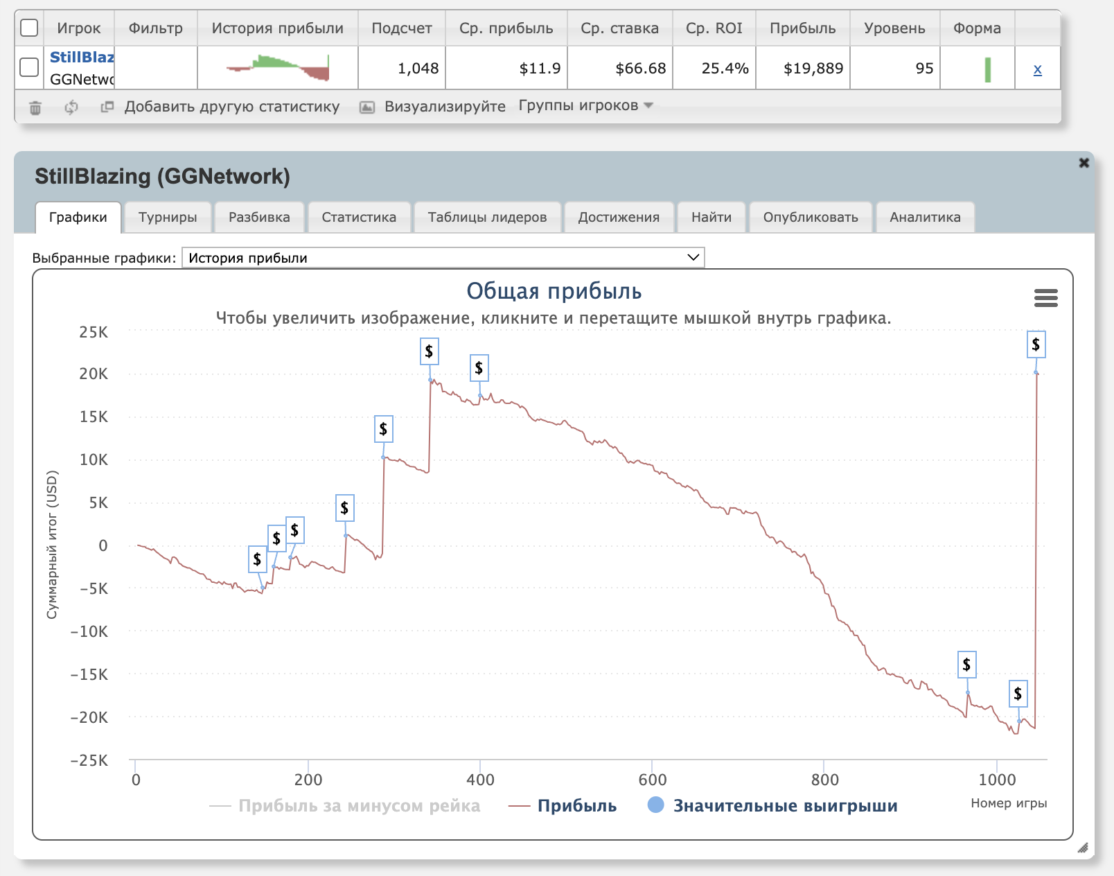 До этого заноса год у него складывался не очень удачно: с марта он попал в даунстрик и проиграл $40K «в одну строчку»: