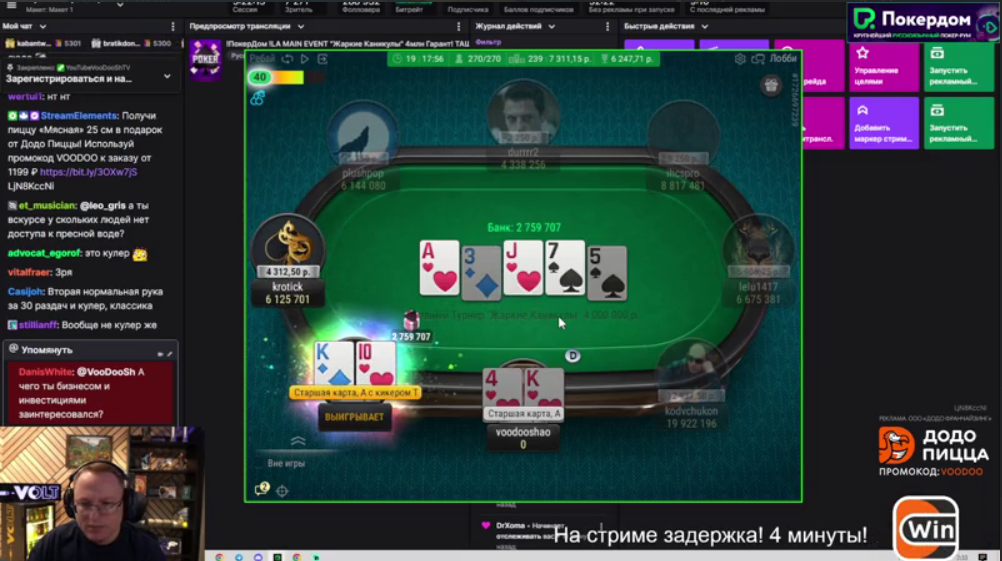 Постоянный зритель Voodoosh’a занял 2 место в ₽5К Главном Турнире Жарких Каникул на Покердоме