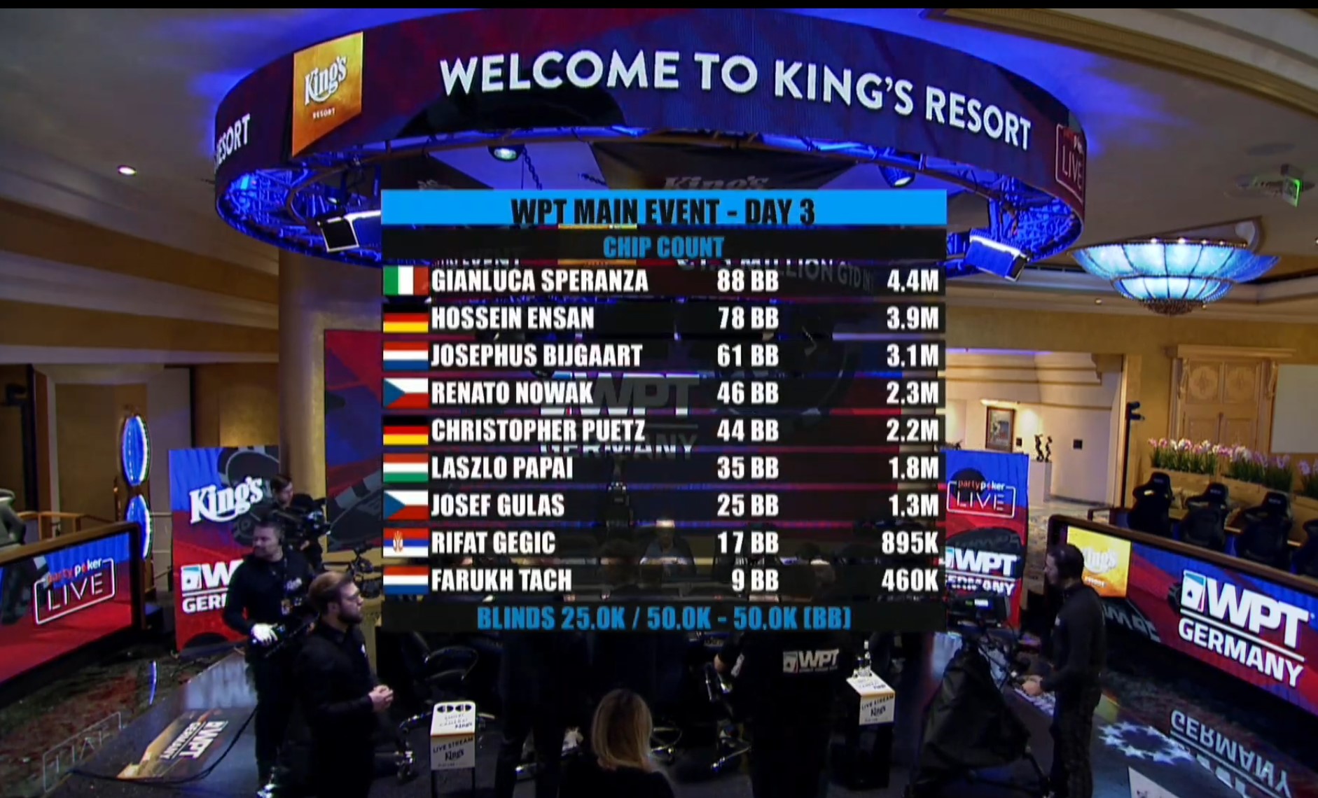 Джанлука Сперанза два года подряд становился лучшим в SCOOP-H Main Event — в 2018 и 2019. Начал финальный день WPT Germany Main Event 2020 чип-лидером со стеком в 88ББ.