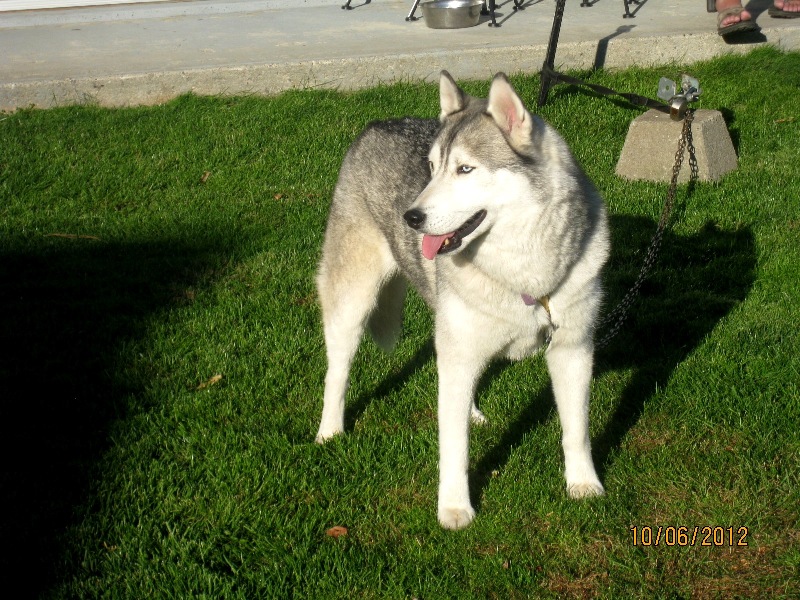Так же поговорила с хозяином такой симпатичной собачки, Хаски, которая так и хотела побегать. Хозяин сказал, что она управляет им, а не он, вот и посадил ее на цепь, чтобы людей не пугала по городу.
