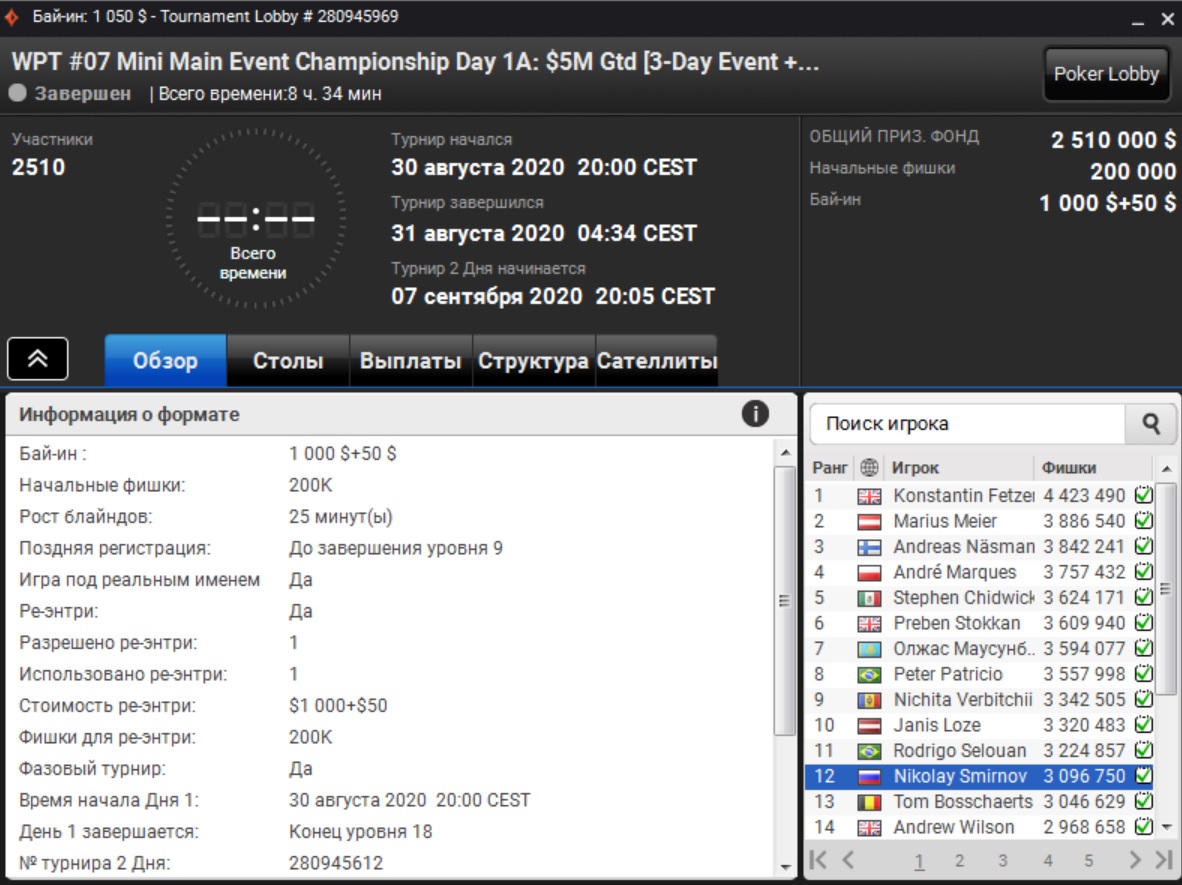 Минувшее воскресенье стало знаковым сразу в нескольких румах. На partypoker всё внимание игроков было приковано к дню 1А главного события за $1’050. Масштабная рекламная кампания и поддержка ивента через систематические оверлеи в отборочных турнирах в итоге привлекли 2510 участников: