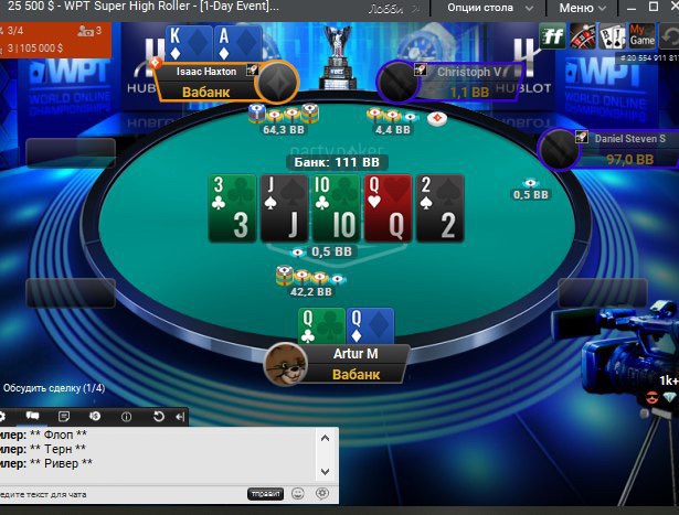 СО рейз 2,2, Фогель 4,4 недопуш и мне дали QQ на ББ, я поставил пуш, получил репуш и пас от Фогеля, который оставил себе 1 ББ, в будущем обеспечивший 105к$.