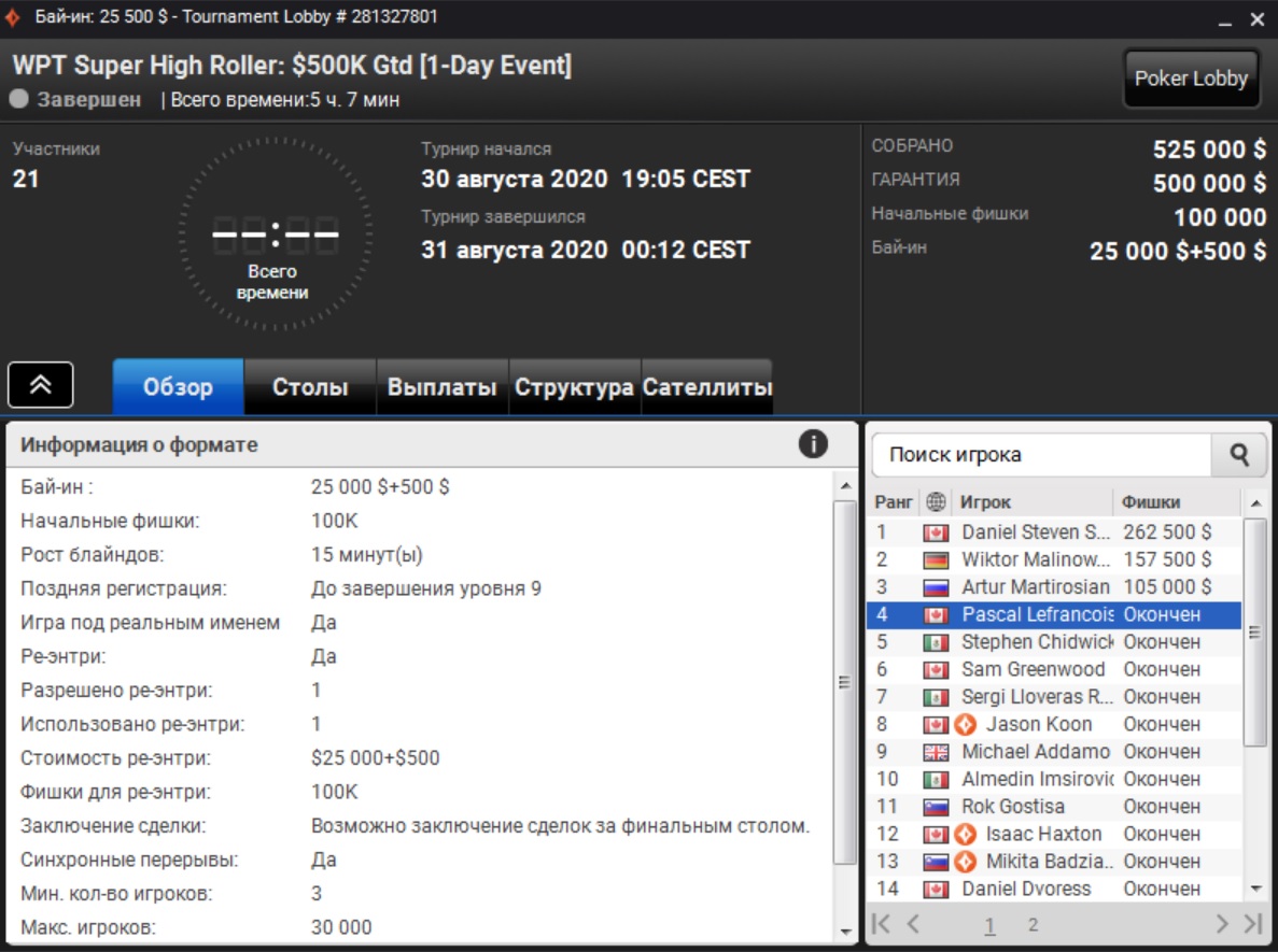 Отобраться на самый масштабный десятитысячник этого года можно начиная с фрироллов, и для тех, кто верит в мечту, еще есть время на подготовку. Наш обзор на этом подошел к концу, следите за WPT, будьте здоровы, читайте pokeroff и до встречи в следующих обзорах.