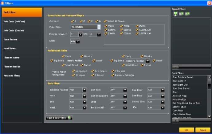 Hole Cards (holdem и omaha) Все элементарно - выбираем нужный спектр рук.