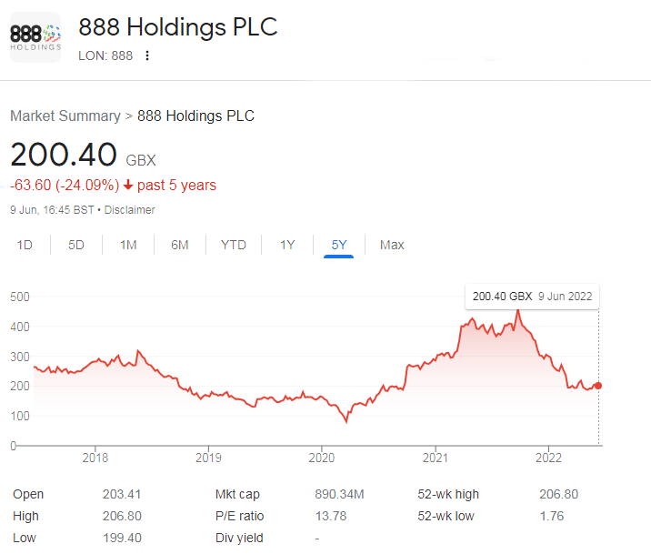 Акции 888 Holdings котируются на Лондонской фондовой бирже по $2,5. Столько они стоили в августе 2020 года.