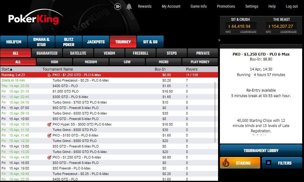 - 17 и 24 апреля — $10,300 Omaholic Super HR $200K GTD