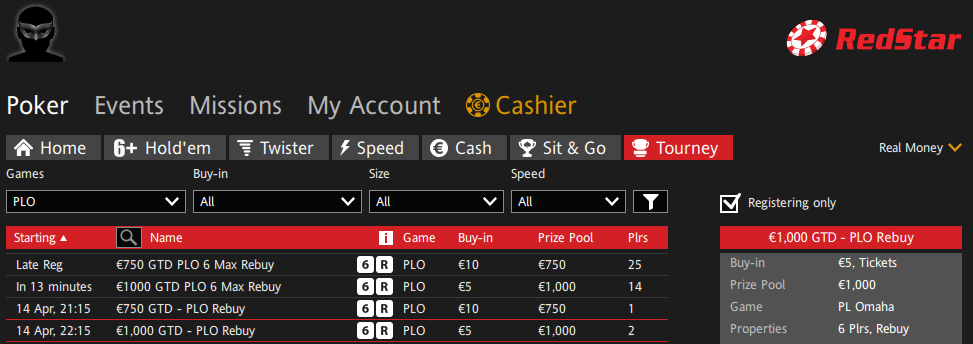 RedStar Poker: четыре ежедневных вечерних турнира до €10