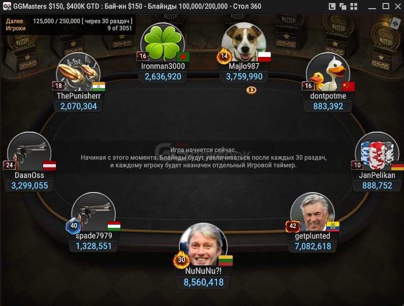 Начиная с минувшего турнира сеть повысила гарантию GGMasters на $100K. Если вы хотите сыграть в ближайшем турнире, то у вас есть возможность сделать это бесплатно — на этой неделе Телеграм-канал Блефач разыгрывает 1 турнирный билет в следующий GGMasters, стоимостью $150, и 10 билетов в финальный сателлит за $15.