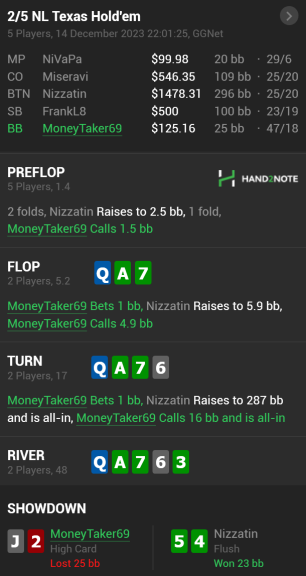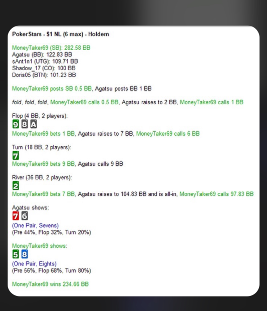 Под конец 2023 служба безопасности GGPoker при содействии группы неравнодушных игроков обнаружила и забанила недобросовестного покериста под ником «MoneyTaker69».