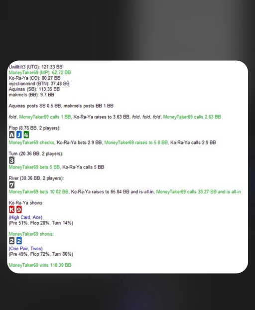 Скриншоты ниже — это примеры рук, собранных различными игроками для иллюстрации потенциально нечестной игры MoneyTaker.