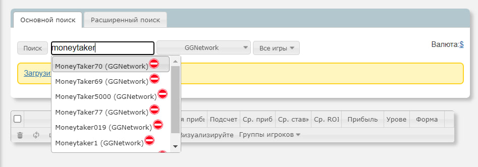 Если выбрать GGNetwork и написать в поисковую строку MoneyTaker, можно увидеть 7 вариаций этого ника в руме с разными цифрами и числами в конце.