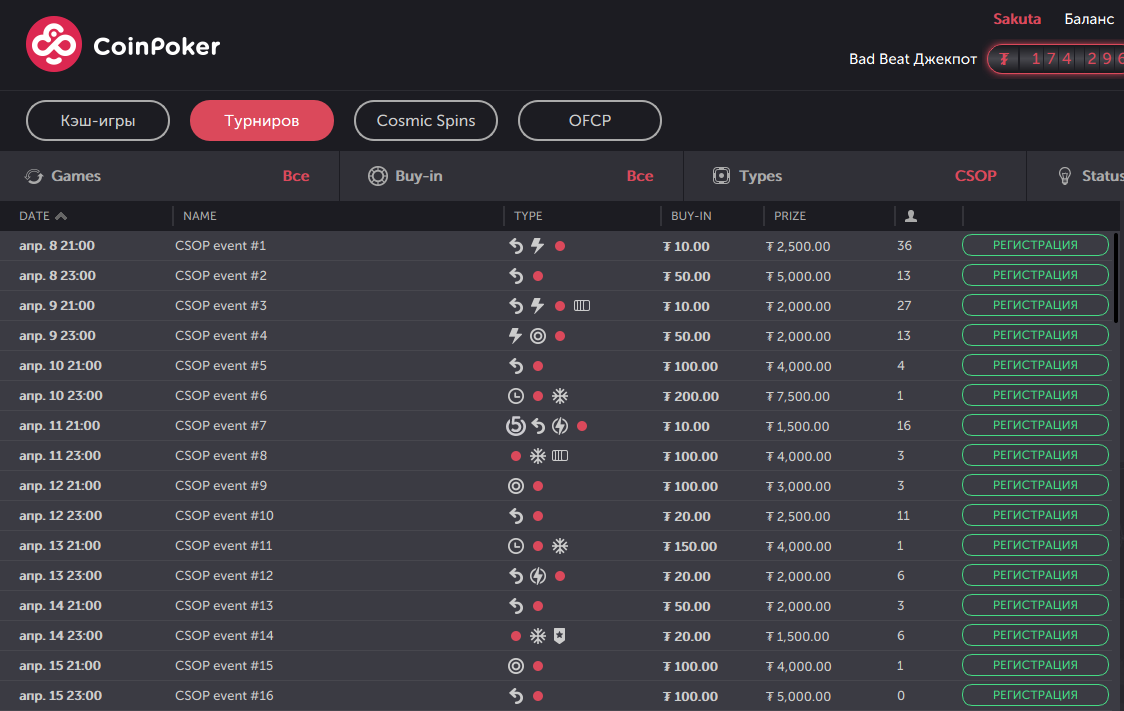 С 8 по 17 апреля на CoinPoker пройдёт серия из 20 турниров. Бай-ины от *$10 до $500. Главное событие за $500 с гарантией $30К пройдёт 17 апреля. Награда за выбивание Tony G — $1,000.