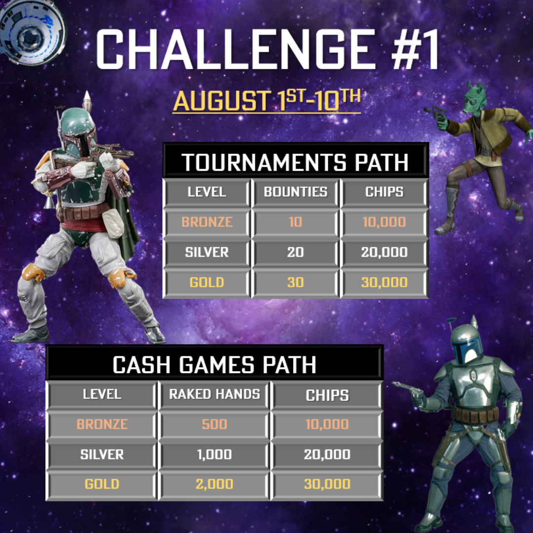 - Cash Game Challenge — увидеть флоп 100 раз за столами NL10 и выше
