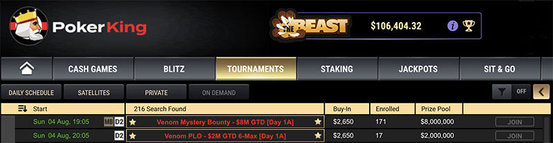 PokerKing: два $2,650 The Venom, серия VenomSpecial + релоад-бонусы по средам до конца лета