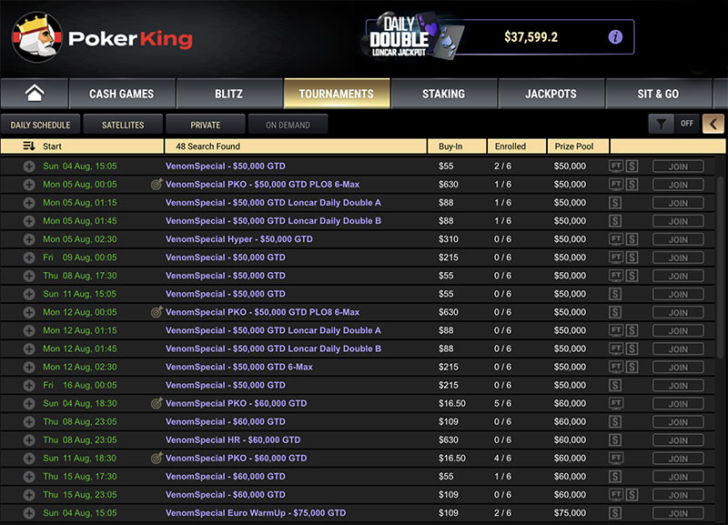 Параллельно с Веномами будет проходить серия из 48 турниров с бай-инами от $16,50 до $1,050 и гарантиями от $50K до $750K.