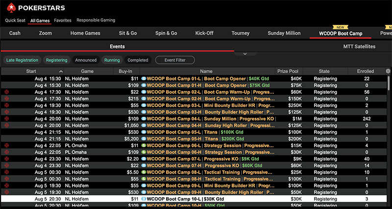 PokerStars: серия WCOOP Bootcamp $12M GTD (недоступно игрокам из РФ)