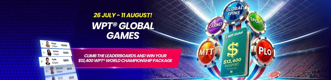 В честь Олимпиады WPT Global запустили свою акцию. Вместо видов спорта представлено 5 дисциплин: MTT, Global Spins, кеш-игра PLO4/5, а также слоты в казино и ставки на спорт. Для каждой игры свой отдельный лидерборд, в котором 10 призовых мест.