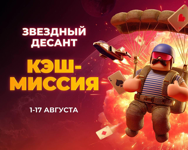 C 1 по 17 августа играйте в кеш на любых лимитах и забирайте по С$2.5 (кэш-долларов) за каждые $10 рейка. Никаких ограничений по количеству наигранных бонусов нет. Для участия в акции нужно активировать «Звёздный десант: кэш-миссия» в разделе Промо.