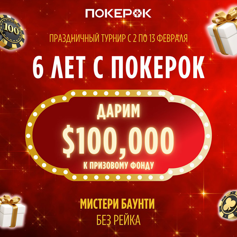 ПокерОК: 6 лет с ПокерОК Мистери Баунти без рейка: дарим $100К, $150 GGMasters 5th Anniversary $5M GTD, GGMillion$ Week $25M GTD и регулярные акции