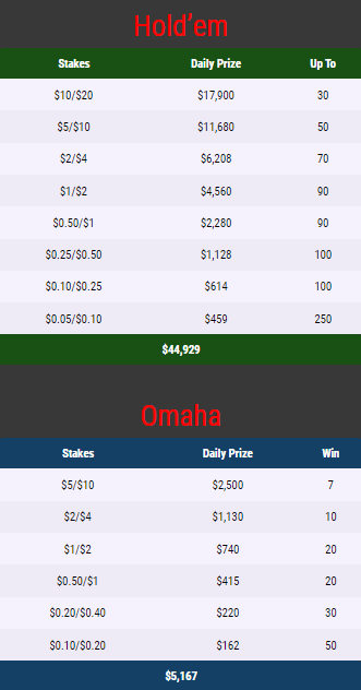 $20.000 Holdem и $25.000 Omaha Daily Leaderboard Daily