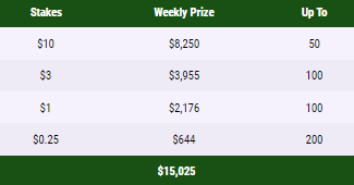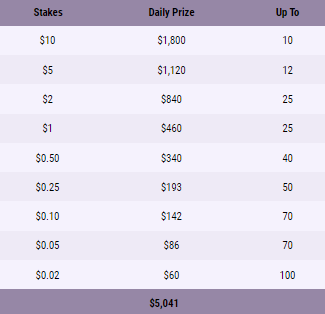 Призовой фонд разделен по четырем лидербордам, каждый проводится в свой промежуток времени. Ещё участники лидербордов могут поймать случайный кеш-дроп во время игры (кеш-дроп не падает на игрока в сит-ауте).