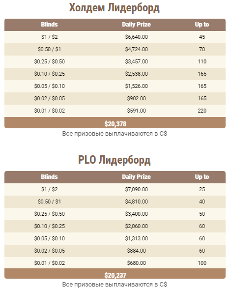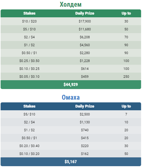 $20K Holdem и $25K Omaha Daily Leaderboard Daily