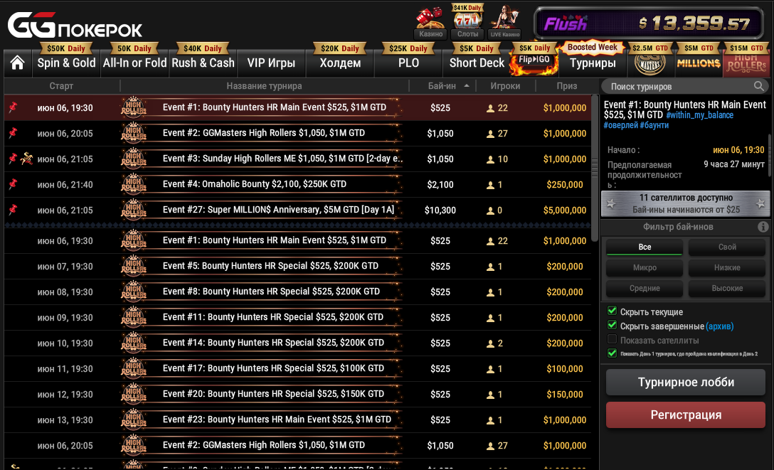 А с 6 по 14 июня на GGПОКЕРОК пройдет серия с очень дорогими турнирами High Rollers Series. В расписании турниры с бай-инами от $525 до $10,300 с увеличенными гарантиями. Пройти отбор на события серии можно уже сегодня.