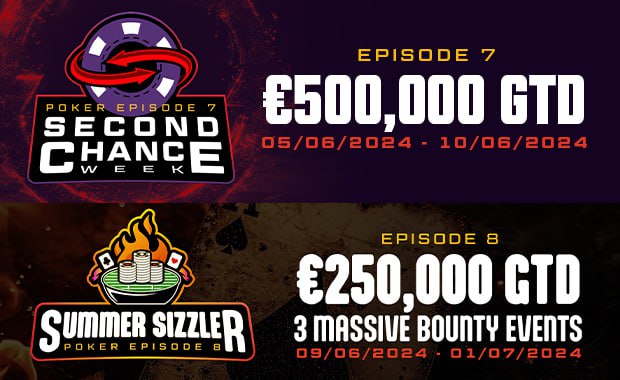 Episode 7: Second Chance Week будет проходить с 5 по 10 июня. В рамках серии пройдут 20 турниров, больше половины гарантии придётся на девять из них с бай-инами от €25 до €500 и гарантиями от €20К до €100К.