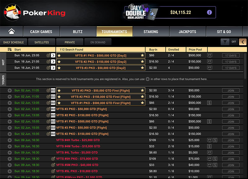 В расписании 136 турниров по NLH, PLO, PLO-5, PLO8, NLO8 , NL 2-7 Single Draw, 6+ Holdem, 8-game, HORSE, PL Badugi с бай-инами от $2.20 до $1,050.
