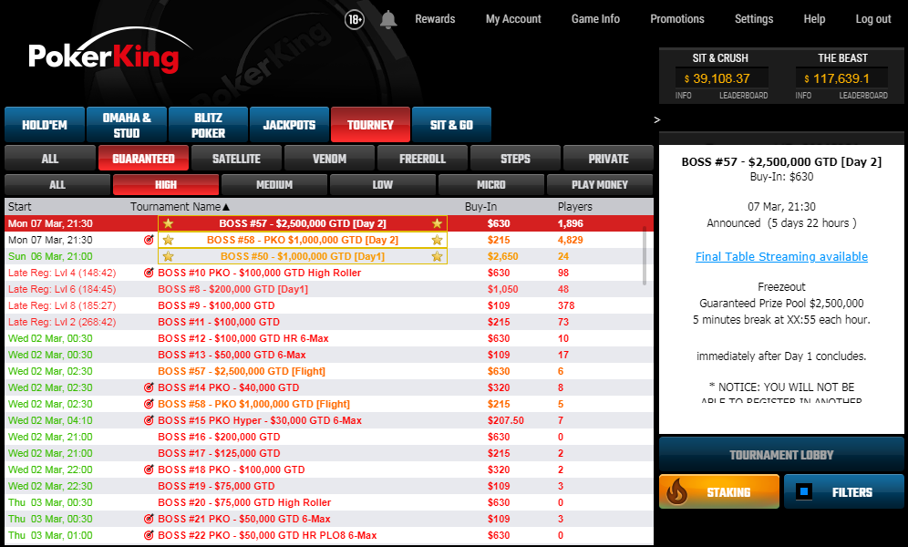 PokerKing: три турнира BOSS с гарантиями от $1M