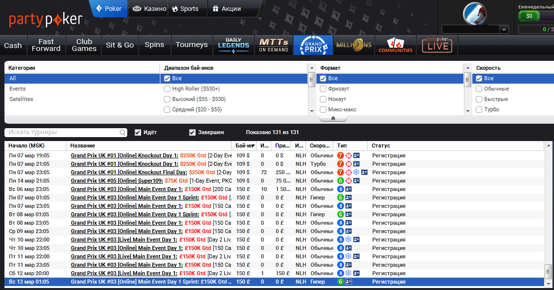 С 27 февраля по 14 марта на partypoker будет проходить онлайн-серия Grand Prix UK. В ней всего пять турниров с бай-инами от $11 до £150.