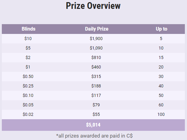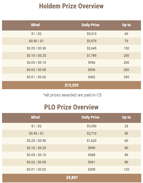 Очки начисляются по количеству сыгранных рейковых раздач. Каждый день с 09:00 до 11:59 МСК «happy hour»: очки умножаются на х1,5. Призы выплачиваются кеш-долларами, которые можно использовать только для кеш-игры.