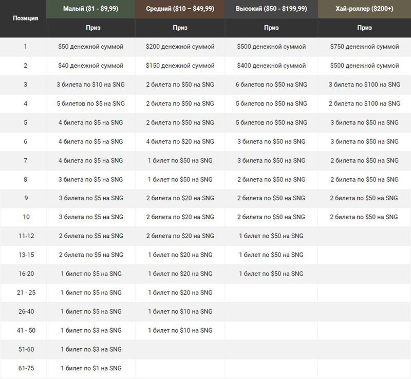 Румы GGPokerOK и BestPoker будут раздавать по $100.000 каждую неделю среди игроков джекпот-снг Spin&Gold. Призы будут распределяться в зависимости от заработанного золота. Золото начисляется по-разному в зависимости от бай-ина и занятого в турнире места. А в субботу очки будут увеличиваться в х1,5 раза, а в воскресенье — в х2.