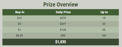 Бай-ин в каждом турнире $1,10. Набираешь очки — получаешь приз.