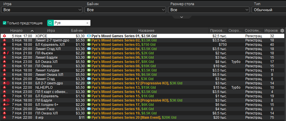 Pye’s Mixed Games Series — микролимитная серия для любителей лимитных игр