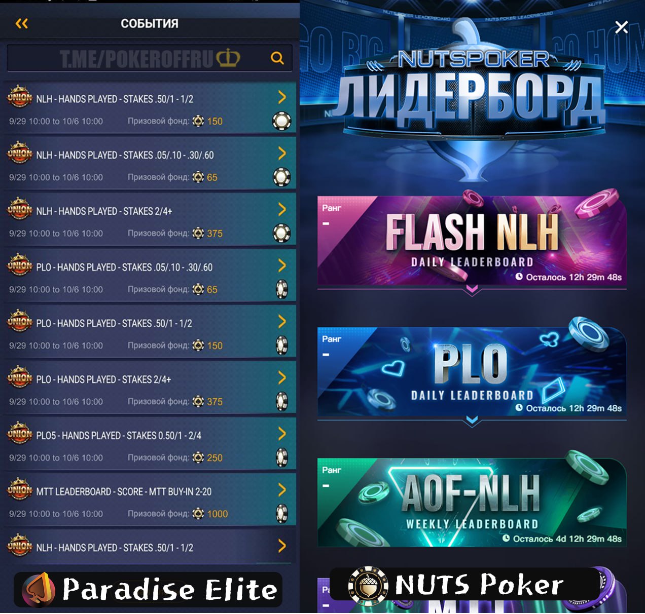 В NUTS Poker игрокам доступны следующие лидерборды.