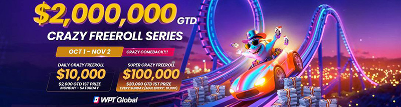 WPT Global: Crazy Freeroll Series с призовым фондом $2,000,000 (недоступно игрокам из РФ и РБ)