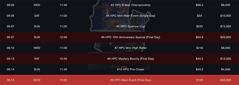 Серия будет проходить с 7 по 29 сентября. В расписании 125 турниров с бай-инами от $2 до $5К.