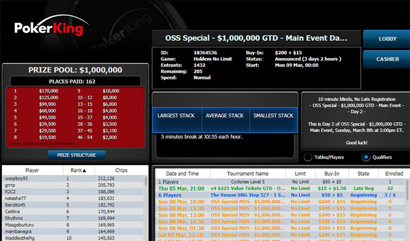 В финальную стадию выходит серия OSS на PokerKing. Со 2 по 8 марта проходит Bigger Online Super Series с общей гарантией $5.000.000. Главное событие серии $2.650 BOSS #37 MDS с гарантией $1.000.000 стартует 8 марта в 21:30 (МСК). Похоже, кому-то из игроков предстоит долгий тяжелый разговор, почему вечером 8 марта нужно провести у экрана монитора с оппонентами из штатов, а не с любимой девушкой.