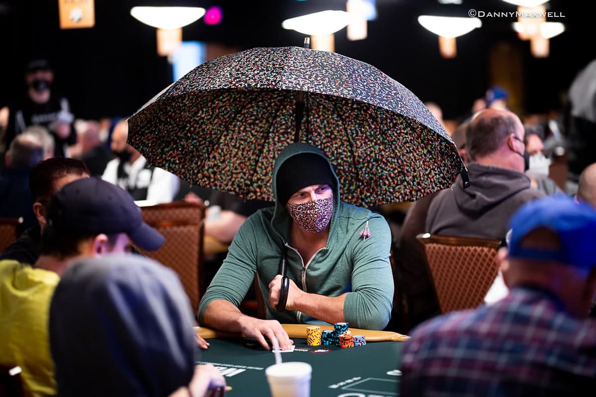- Брэндон Шак-Харрис с зонтиком на WSOP