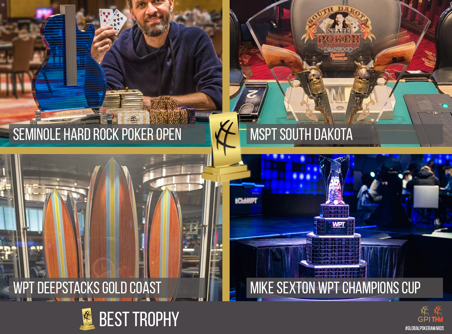 Global Poker Awards проходит третий год подряд и неофициально именуется «покерным Оскаром». На церемонии 2022 года вручат 26 наград в самых разных категориях: от лучшего игрока года до владельца самого интересного покерного твиттера.